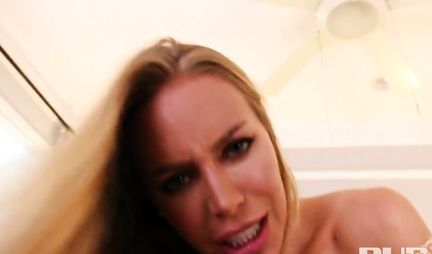 Блондинка с большими дойками трахается с новым другом в спальне от первого лица