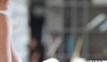 Брюнетка в позе раком раздвигает ноги для вагинала с чернокожим парнем