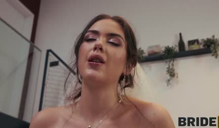 Брюнетка в свадебном платье ебется с будущим свекром