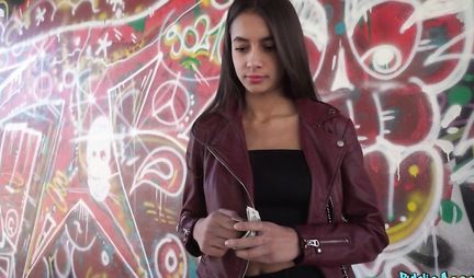 Девушка с упругими сиськами сосет пикаперу ради наличных