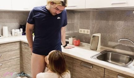 Муж пришел с работы и чем его угощать, если его симпатичная супруга умеет делать минет, но не умеет варить борщ. Ну да пусть сегодня перекусит бутербродами, - там думает девица, делая минет и подставляясь под пенис в позиции догги-стайл прямо на кухне. Так через что же лежит путь к сердцу мужчины - через желудок или его член?!