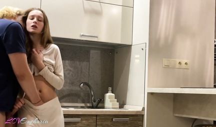 Русская девушка наслаждается членом приятеля на кухне