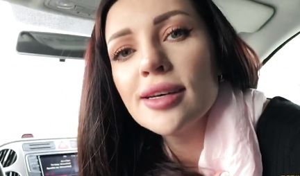 Темноволосая девушка в машине открыла ротик и порадовала член глубоким минетом