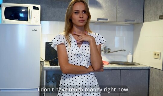 Если снимаешь квартиру с подселением, а твоя соседка симпатичная девушка такая как Машка, то будь готов к любым неожиданностям - 00:21. Так сегодня аппетитная девица просит заплатить за нее за квартиру и обещает все что сосед захочет, на 01:00. Тот предлагает платить регулярно всего лишь за пару сеансов секса в неделю с 01:23 и она почти не думая соглашается на 01:48. В итоге парочка классно трахается и похоже чувак не понимает что он уже практически попал на бабки, после того как она начинает раздеваться на 02:11 и тут сразу переход в позицию догги-стайл на 02:33 и потом крупно в миссионерской позе с 05:05 и потом все на 07:43. После того, как она идет в ванную помыться, он вспоминает, что она не сосала его член и решает это дело исправить на 08:36 и даже дает Машке полизать свои яйца на 11:53, а потом кончает в ротик на 12:21. А вот если бы он ее жарил и она платила бы еще и за него - вот это был бы класс... вот к чему надо стремиться...