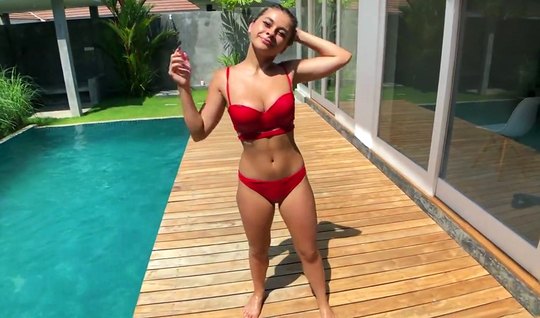 Девушка спустила свое бикини для того, чтобы сняться в домашнем порно на природе