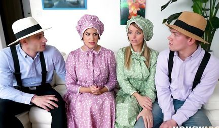 Который год подряд, мы вам твердим, что сайт HDпорно.ru это не про голых девок и секс, а образовательный проект с индивидуальным подходом к теме. Давайте сегодня вместе с вами окунемся в загадочный и закрытый мир амишей и узнаем про Америку с другой стороны. Девушки амиши приехали к парням из их общины, которые ушли от ортодоксальной религии и теперь живут в городе с местными проблемами и электричеством. И у них на уме всякие сексуальные мерзости. А что может быть задорней, если совместить ортодоксальное течении религии и свальный грех!