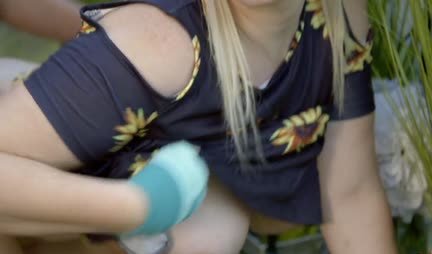 Мачеха с большой попкой подставила дырочку в огороде