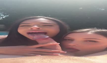 Две весьма симпатичные половозрелые девицы слегка притомились и заказали себе пиццу через курьера. Но когда тот принес им доставку, у подружек даже не нашлось денег на ее оплату. Но все равно девицы рассчитались с курьером, пригласив его к бассейну и сделав минет с окончание в два ротика. А вы бы согласились на подобный расчет, если бы были на месте курьера?... а на месте девушек? В роли курьера доставки - Леха Питерский, он же Маётный.