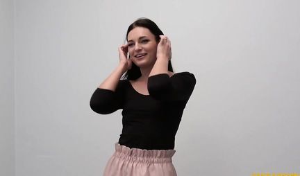 На кастинге стройная брюнетка обнажила прелести и дала раком режиссеру