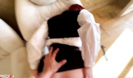 Парень отшлепал по упругой заднице рыжеволосую русскую студентку