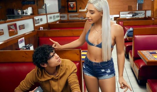 Парень пикапер прямо в кафе уговорил молодую блондинку на секс от первого лица