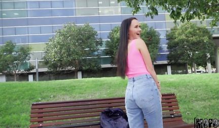 Пикапер на публике уговорил молодую брюнетку на секс от первого лица