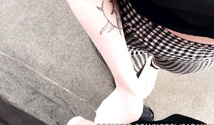 Русская девушка на публике подставляет свою пилотку для любви, а ротик для минета