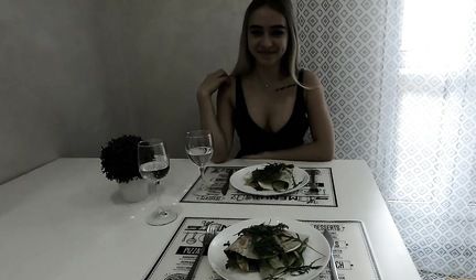 Русская девушка после завтрака наслаждается съемками домашнего порно видео