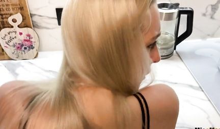 Заметив симпатичную блондинку мерзнущую на площадке, парень подошел узнать что с ней случилось. Оказалось что подругу кинул друг и теперь у нее проблемы с ночлегом и транспортом чтобы добраться до дома. Пообещав разрулить все проблемы, хлопец привел телку домой и напоил чаем. Та оказалось вполне способной ценить доброту и сделала не только минет, но и позволила хорошенько себя отодрать. Ну теперь-то вы видите что нужно быть добрее к людям и они к вам потянуться - хотя бы за членом...