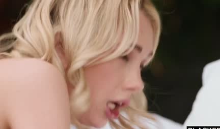 Симпатичная блондинка с маленькими сиськами трахается с негром