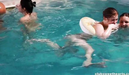 И если кто-то из мужиков на Новый год ходит в баню, то вот эта пятерка симпатичных молодых девушек предпочитает посещать спа-салон на протяжении всего года, наведываясь туда еженедельно по пятницам. И причина столь сильной тяги к купанию в бассейне в том, что девицы ничуть не скромничают, а обязательно в конце помывки начинают ласкать друг друга и гладить во всяких интимных местах, чтобы затем заняться групповым лесбийским сексом. Все верно: лучше заниматься сексом каждую неделю, чем раз в год!