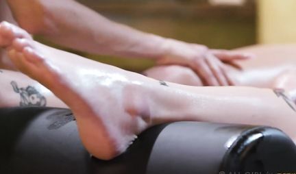 Татуированная лесбиянка во время массажа испытала возбуждение и оргазм