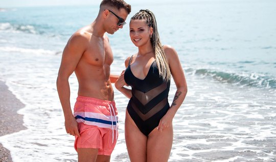 И пусть сиськи у очаровательной Джоли Лав в разы меньше чем у Семенович, но вот жопа пожалуй не уступает ей ни в одной номинации. Вот потому когда красавица отдыхает на море, то натурально не испытывает недостатка в мужчинах. И пусть она приехала на море только вчера, а сегодня уже жарится в обоих смыслах на свежем воздухе.